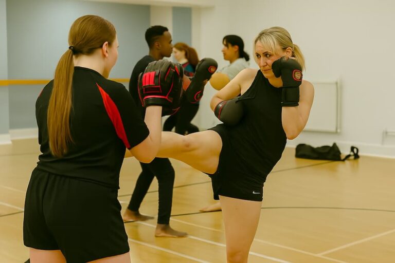 The main focus of our Combat Classes is pad work and you’ll learn a variety of powerful punching and kicking techniques in a safe, controlled environment. Training with partners helps simulate real-world movement and dramatically improves your timing, speed, and power, essential skills for practical self defence. Demanding workouts like kettlebell exercises and circuit training are also integrated into these sessions. This approach is designed to improve and maintain muscular endurance, strengthen joints, and dramatically boost cardiovascular fitness. Our full-body conditioning approach will perfectly complement your martial arts journey and enhance your overall functional strength.